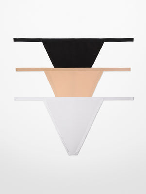 This SUZE® V-String Essential 3-Pack offers three must-have v-strings in timeless shades: Beige (Latte), Black, and White. Each panty is crafted from the softest stretch fabric, providing ultimate comfort and a flawless fit. Designed with innovative stretch and recovery technology, these essentials ensure the elastic retains its shape and fit, even as your waistline changes over time. Whether you’re opting for neutral tones or classic black, this trio has you covered. Pack of 3.