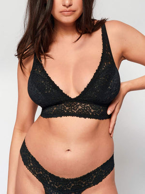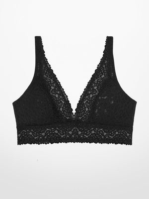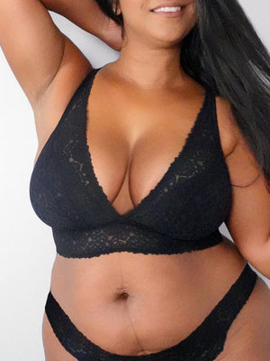 A wire-free triangle plunge bra with 4-way stretch lace that holds and molds to your bust. Designed and tailored to individual cup sizes for your most accurate fit. Our newest Luxe-Stretch Lace Triangle Bralette features a plunging neckline and our Flex-Sizing® stretch lace. This wireless plunge bralette supports with adjustable straps and a hidden inner sling for extra hold. This bra is meant for your curves.