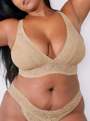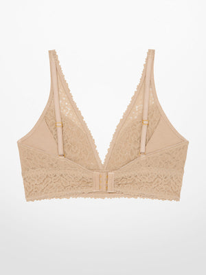 A wire-free triangle plunge bra with 4-way stretch lace that holds and molds to your bust. Designed and tailored to individual cup sizes for your most accurate fit. Our newest Luxe-Stretch Lace Triangle Bralette features a plunging neckline and our Flex-Sizing® stretch lace. This wireless plunge bralette supports with adjustable straps and a hidden inner sling for extra hold. This bra is meant for your curves.